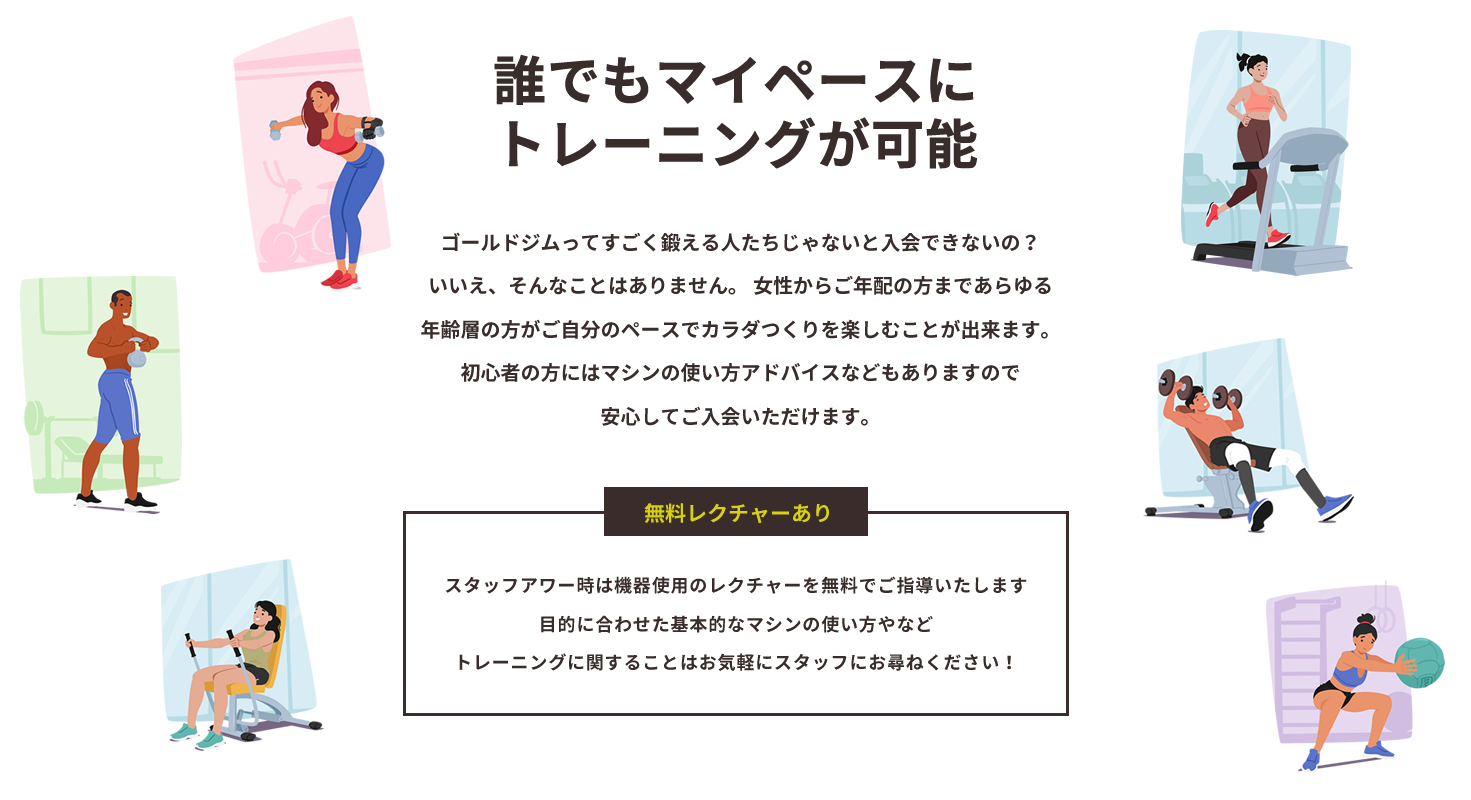 専門トレーナーが丁寧にアドバイスするので初めてでも安心。理想のボディラインを実現しましょう。